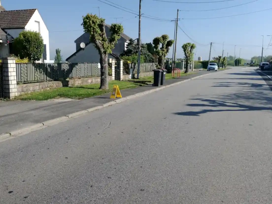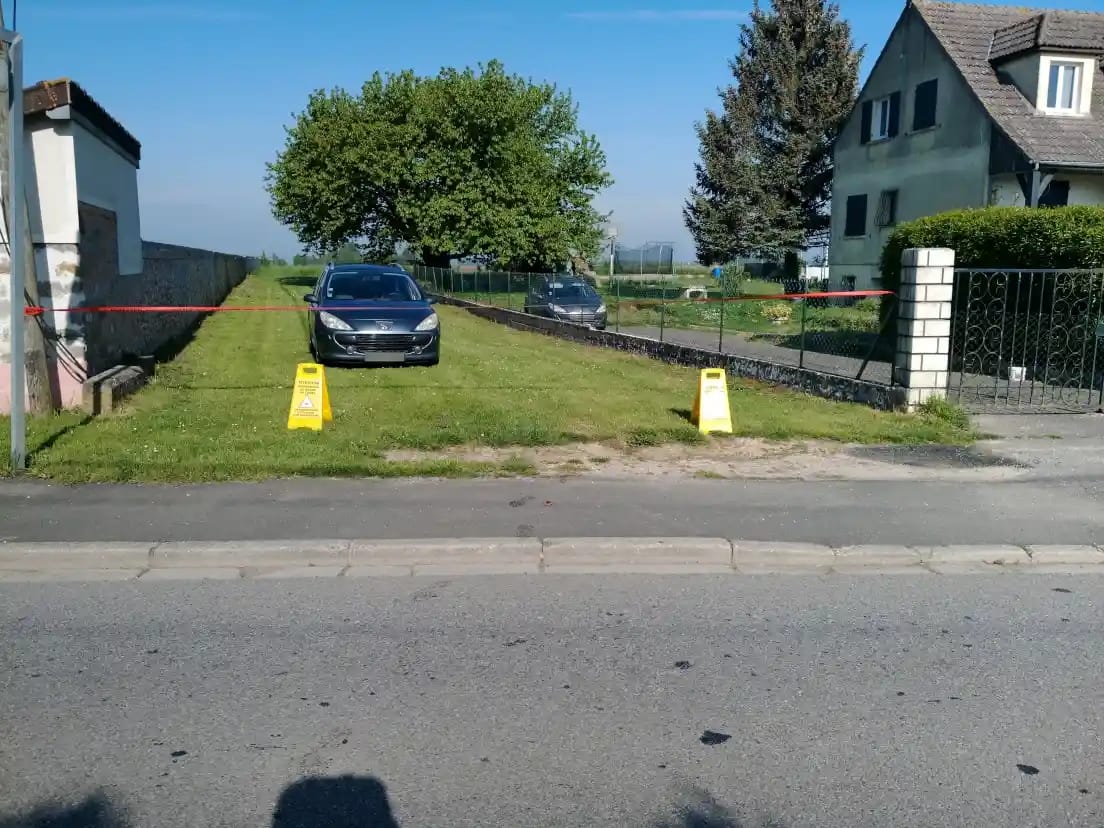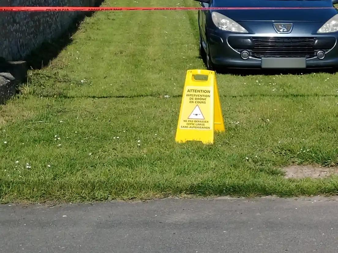 Lors de cette intervention réalisée à Villiers-Saint-Georges, une zone de sécurité a été mise en place afin de garantir le bon déroulement des opérations et la protection des personnes présentes à proximité. La signalisation visuelle permet d’indiquer clairement qu’un vol de drone est en cours. La mise en place d’un périmètre de sécurité fait partie intégrante de chaque intervention afin de garantir un environnement de travail maîtrisé.